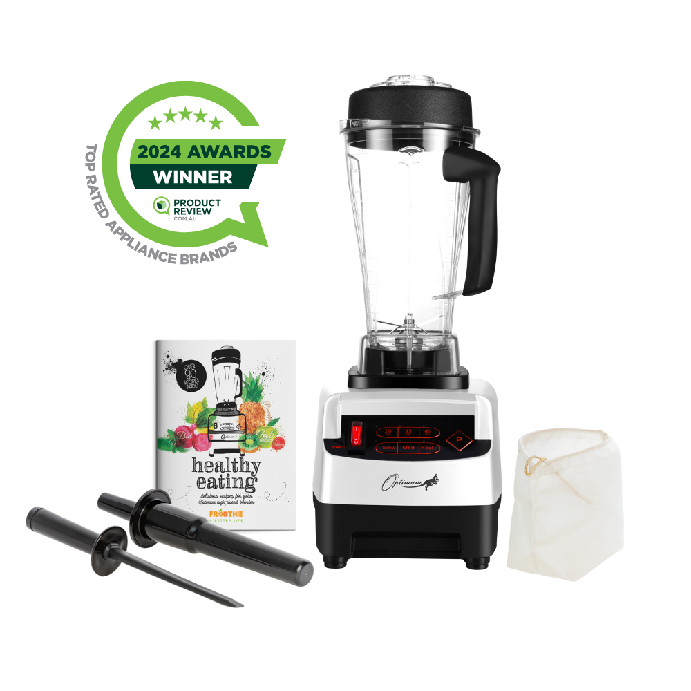While ordinary blenders have a blower motor that runs constantly at maximum power, which can cause the motor to burn out quickly, the Optimum uses a proprietary carbon brush motor that is optimized to use only the power it needs - giving you a motor lifespan of decades instead of months. This component is one reason why Froothie offers its customers the option of a 5 year motor warranty, 1 year parts warranty (domestic), backed by Athena Solutions Pty Ltd and the manufacturer Optimum Appliances Australia.