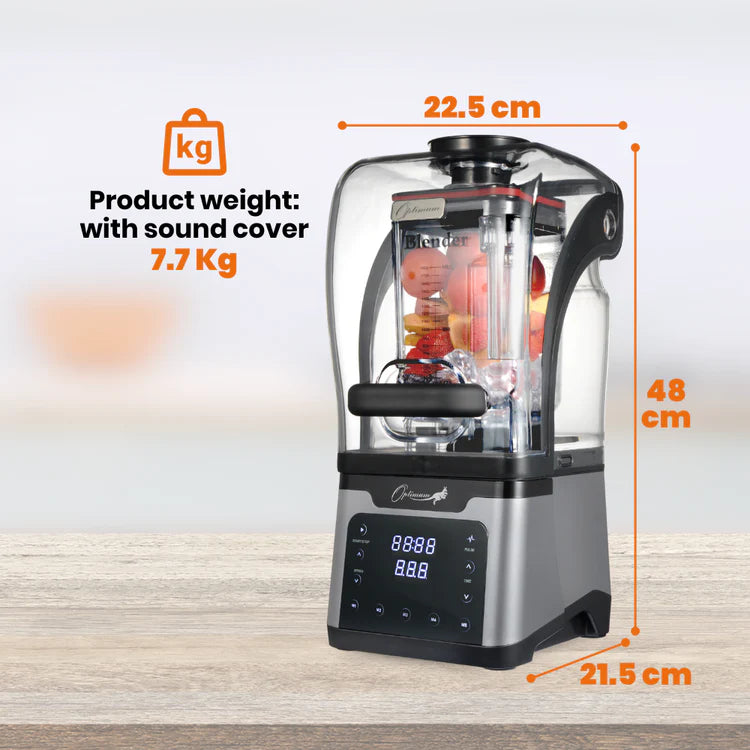 Recent tests have shown that the motor of the Optimum Vortex Blender is significantly quieter than that of its competitors. While it normally operates at just 85-90 decibels, you can reduce the volume to just 60 decibels with the optional soundproof cover. This makes the Optimum Vortex Blender officially the quietest blender in the industry - ideal for your family or workplace!